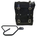 Bolso hecho a mano en Italia en resistente algodón impermeable de la más alta calidad. Con atención a los detalles más pequeños con acabados de cuero de 3 mm, simples y puros como los materiales con los que fue construida. Se adhiere rápidamente a nuestro marco portabolsas con el sistema de liberación rápida ya incluido y montado en la parte posterior de la bolsa, que está equipada con un candado para bloquear en el marco mismo. Puede alojar una computadora portátil de 15 "en su interior, está equipada con un gran bolsillo con cremallera para el teléfono y los documentos.