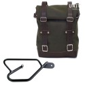Bolso hecho a mano en Italia en resistente algodón impermeable de la más alta calidad. Con atención a los detalles más pequeños con acabados de cuero de 3 mm, simples y puros como los materiales con los que fue construida. Se adhiere rápidamente a nuestro marco portabolsas con el sistema de liberación rápida ya incluido y montado en la parte posterior de la bolsa, que está equipada con un candado para bloquear en el marco mismo. Puede alojar una computadora portátil de 15 "en su interior, está equipada con un gran bolsillo con cremallera para el teléfono y los documentos.