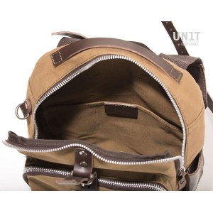 Atención al más mínimo detalle con acabados en piel de 3 mm, simple y pura como los materiales con los que fue construida. Se fija con las correas suministradas y se convierte en mochila una vez desmontada de la moto. En su interior puede albergar un portátil de 15" y está equipado con un gran bolsillo con cremallera para el teléfono y los documentos.