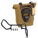 Atención a los detalles más pequeños con acabados de cuero de 3 mm, simples y puros como los materiales con los que fue construido. Se adhiere rápidamente a nuestro marco de soporte de bolsa con el sistema de liberación rápida ya incluido y montado en la parte posterior de la bolsa, que está equipado con un bloqueo para bloquear el marco en sí. Puede alojar una computadora portátil de 15 ", está equipada con un gran bolsillo con cremallera para teléfono y documentos.