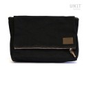 Lona negra con ribete de cuero marrón