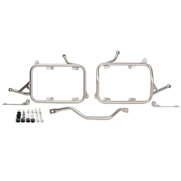 Este completo conjunto de cuadros fabricados en acero inoxidable se integra perfectamente con el resto de la bicicleta. Viene completo con kit de montaje y tornillos, no requiere modificaciones. Se puede montar en la moto en combinación con nuestros portaequipajes (código: 4004) con accesorios originales BMW como el portaequipajes o el asa del pasajero.