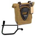 Atención al más mínimo detalle con acabados en piel de 3 mm, simple y pura como los materiales con los que fue construida. Se fija rápidamente a nuestro marco portabolsas con el sistema de liberación rápida aplicado en la parte posterior de la bolsa, que está equipada con un candado para bloquear el marco mismo. En su interior puede albergar un portátil de 15" y está equipado con un gran bolsillo con cremallera para el teléfono y los documentos.