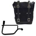 tratado con cera que lo hace resistente al agua. Atención al más mínimo detalle con acabados en piel de 3 mm, simple y pura como los materiales con los que fue construida. Se fija rápidamente a nuestro marco portabolsas con el sistema de liberación rápida aplicado en la parte posterior de la bolsa que está equipada con un candado para bloquear. Puede contener un portátil de 15" y está equipado con un gran bolsillo con cremallera para el teléfono y los documentos.