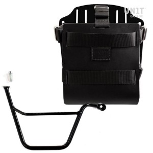 Portabolsa en aluminio con frontal de cuero ajustable, enganche rápido y marco derecho