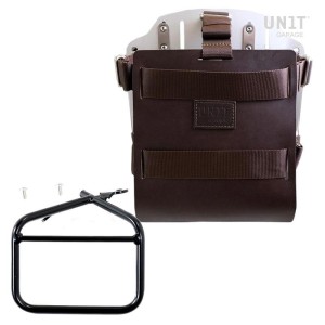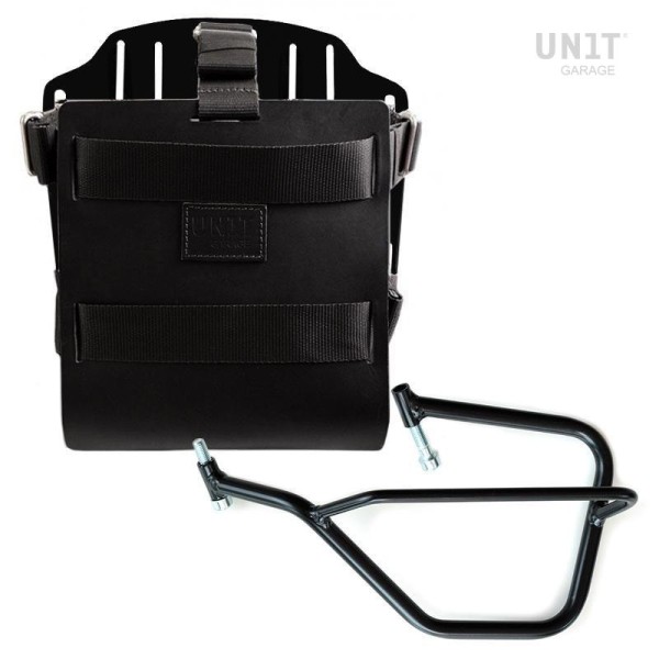 Porta bolsos en aluminio con frontal de cuero ajustable, enganche rápido y marco izquierdo