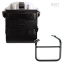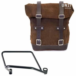 Portabolsa de aluminio con frontal de cuero ajustable, enganche rápido y marco scrambler 1100 para doble escape derecho
