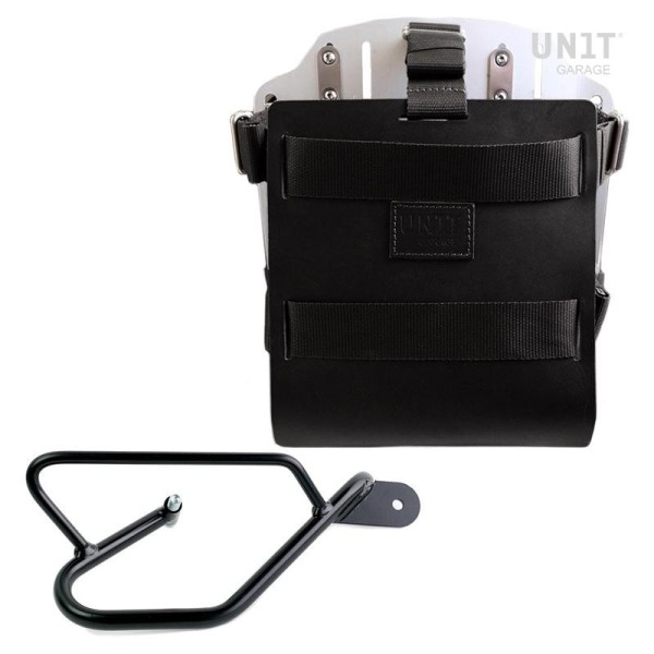 Está montado en el lado derecho de la bicicleta. Diseñado para Moto Guzzi, se integra perfectamente con el resto de la moto. Listo para albergar nuestro sistema de fijación rápido, hermoso y mínimo incluso cuando la bolsa no está montada. Viene completo con tornillos y se puede montar fácilmente en la bicicleta en su configuración original con o sin marco de pasajero. Nuestros accesorios están diseñados para ser compatibles entre sí, excepto en los casos excepcionales indicados en las fichas de producto. Se puede utilizar cómodamente con el pasajero a bordo.