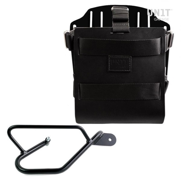 Portabolsa de aluminio con frontal de cuero ajustable, enganche rápido y marco (2016 en adelante)