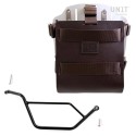 Portabolsa de aluminio con frontal de cuero ajustable, enganche rápido y marco
