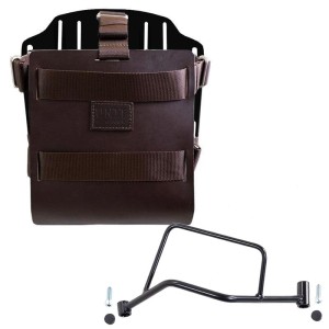Porta bolsos en aluminio con frontal de cuero ajustable, enganche rápido y marco izquierdo