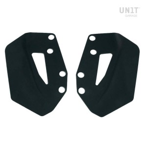 Placa portabolsas de aluminio anodizado con frontal de piel regulable. Se acopla rápidamente a nuestros marcos portabolsas con el sistema de liberación rápida código U000 ya incluido y montado en la parte posterior de la placa , que está equipada con un candado para bloquear en el marco mismo. La placa crea una superficie de montaje plana en el lateral de la bicicleta, esto permitirá el transporte de bolsas sueltas u otros objetos, como sacos de dormir, chaquetas, etc. La solapa frontal, con atención a los detalles más pequeños con acabados de cuero de 3 mm, se puede ajustar con los deslizadores suministrados y se puede quitar muy rápidamente de la placa.