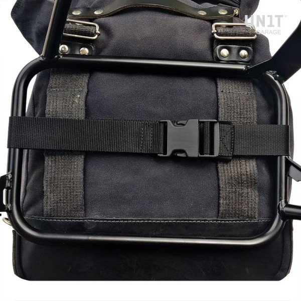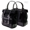 Simple y puro como los materiales con los que fueron construidos. Par de bolsos hechos a mano en Italia en resistente algodón impermeable de alta calidad. Atención al detalle con acabados de cuero de 3 mm. Universal es adaptable a todas las motocicletas, simplemente moviendo el ajuste de las bandas centrales cambia la altura desde el suelo. La parte posterior de la bolsa está equipada con ganchos de tela para fijar en la bicicleta. En la parte delantera, un gran bolsillo con cremallera para teléfono y documentos. Una vez fuera de la bicicleta, puede usar las bandas centrales sobre el hombro o sobre el hombro.