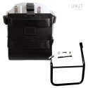 Está montado en el lado izquierdo de la bicicleta. Diseñado para el Caballero se integra perfectamente con el resto de la moto. Listo para albergar nuestro sistema de fijación rápido, hermoso y mínimo incluso cuando la bolsa no está montada. Viene completo con tornillos y se puede montar fácilmente en la bicicleta en su configuración original con o sin marco de pasajero. Nuestros accesorios están diseñados para ser compatibles entre sí, salvo en los casos excepcionales indicados en las fichas de producto. Se puede utilizar cómodamente con el pasajero a bordo.