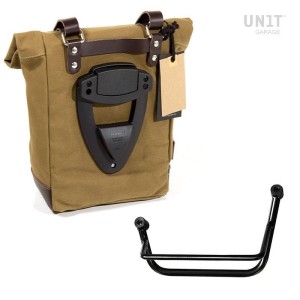 Bolso hecho a mano en Italia en resistente algodón impermeable de la más alta calidad. Atención al detalle con acabados en piel de 3 mm, sencillos y puros como los materiales con los que se construyó. Se fija rápidamente a nuestro marco portabolsas con el sistema de liberación rápida ya incluido y montado en la parte posterior de la bolsa, que está equipada con un candado para bloquear en el marco mismo. Puede albergar una computadora portátil de 15 "en su interior, está equipada con un gran bolsillo con cremallera para el teléfono y los documentos.