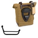 Bolso hecho a mano en Italia en resistente algodón impermeable de la más alta calidad. Atención al detalle con acabados en piel de 3 mm, sencillos y puros como los materiales con los que se construyó. Se fija rápidamente a nuestro marco portabolsas con el sistema de liberación rápida ya incluido y montado en la parte posterior de la bolsa, que está equipada con un candado para bloquear en el marco mismo. Puede albergar un portátil de 15 "en su interior, está equipado con un gran bolsillo con cremallera para teléfono y documentos.