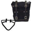 tratado con cera que lo hace resistente al agua. Con atención a los detalles más pequeños con acabados de cuero de 3 mm, simples y puros como los materiales con los que fue construida. Se conecta rápidamente a nuestro marco portabolsas con el sistema de liberación rápida ya incluido y montado en la parte posterior de la bolsa, que está equipada con un candado para bloquear. Puede contener una computadora portátil de 15 "en su interior, está equipada con un gran bolsillo con cremallera para el teléfono y los documentos.