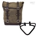 tratado con cera que lo hace resistente al agua. Con atención a los detalles más pequeños con acabados de cuero de 3 mm, simples y puros como los materiales con los que fue construida. Se conecta rápidamente a nuestro marco portabolsas con el sistema de liberación rápida ya incluido y montado en la parte posterior de la bolsa, que está equipada con un candado para bloquear. Puede contener una computadora portátil de 15 "en su interior, está equipada con un gran bolsillo con cremallera para el teléfono y los documentos.