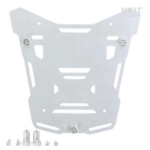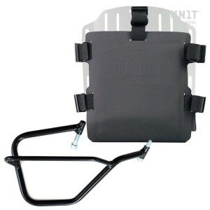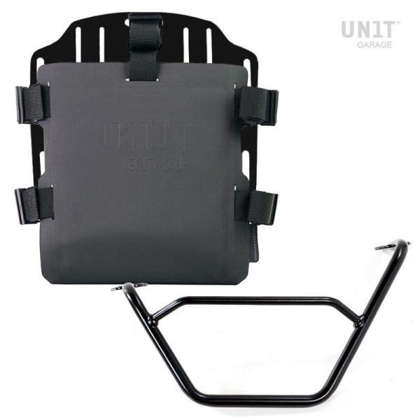 placa, que está provista de un bloqueo para bloquear en el propio marco. La placa crea una superficie de montaje plana en el costado de la bicicleta, esto permitirá el transporte de bolsas sueltas u otros objetos, como sacos de dormir, chaquetas, etc. La solapa frontal, con atención a los detalles más pequeños, con acabados de Hypalon, se puede ajustar mediante los deslizadores suministrados y se puede quitar muy rápidamente de la placa.