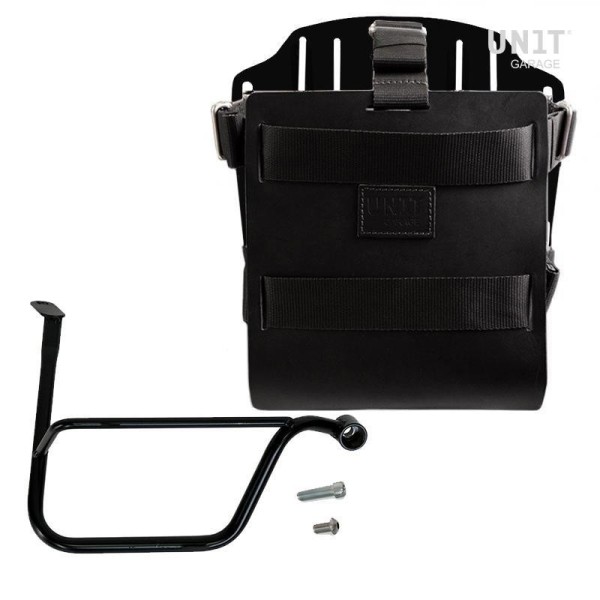 Portabolsa de aluminio con frontal de cuero ajustable, enganche rápido y marco (2019 en adelante)
