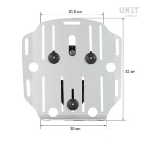 Placa portabolsas de aluminio anodizado con frontal de piel regulable. Se adhiere rápidamente a nuestros marcos portabolsas con el sistema de liberación rápida código U000 ya incluido y montado en la parte posterior de la placa , que está equipada con un bloqueo para bloquear en el marco mismo. La placa crea una superficie de montaje plana en el lateral de la bicicleta, esto permitirá el transporte de bolsas sueltas u otros objetos, como sacos de dormir, chaquetas, etc. La solapa frontal, con atención a los detalles más pequeños con acabados de cuero de 3 mm, se puede ajustar con los deslizadores suministrados y se puede quitar muy rápidamente de la placa.