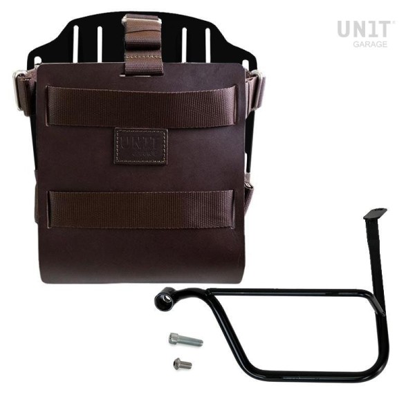 Portabolsa de aluminio con frontal de cuero ajustable, enganche rápido y marco (2019 en adelante)