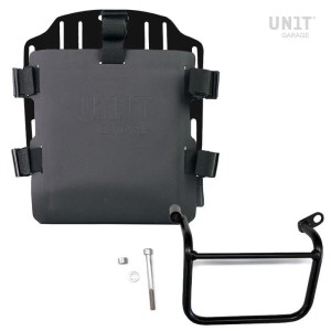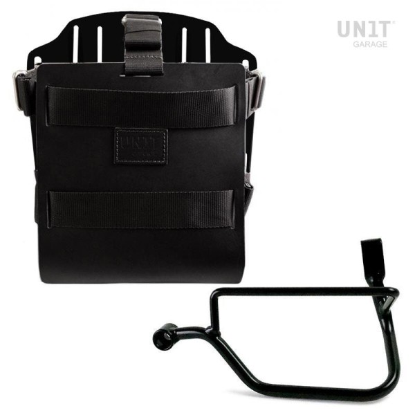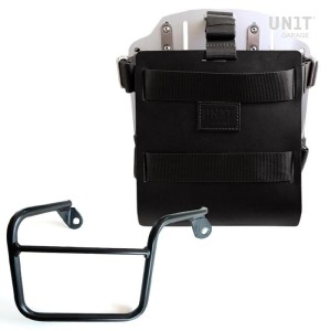 Portabolsas de aluminio con frontal de cuero ajustable y enganche rápido + chasis thriumph scrambler 400 x dx (sólo compatible con nuestro escape bajo código: 4206low)