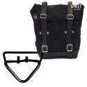 tratado con cera que lo hace resistente al agua. Con atención a los detalles más pequeños con acabados de cuero de 3 mm, simples y puros como los materiales con los que fue construida. Se conecta rápidamente a nuestro marco portabolsas con el sistema de liberación rápida ya incluido y montado en la parte posterior de la bolsa, que está equipada con un candado para bloquear. Puede contener una computadora portátil de 15 "en su interior, está equipada con un gran bolsillo con cremallera para el teléfono y los documentos.