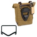 Con atención a los detalles más pequeños con acabados en cuero de 3 mm, simple y puro como los materiales con los que fue construido. Se conecta rápidamente a nuestro marco portabolsas con el sistema de liberación rápida ya incluido y montado en la parte posterior de la bolsa, que está equipada con un candado para bloquear en el propio marco. Puede albergar un portátil de 15" en su interior, está equipado con un gran bolsillo con cremallera para teléfono y documentos.