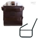Portabolsas de aluminio con frontal de cuero regulable, enganche rápido y marco izquierdo