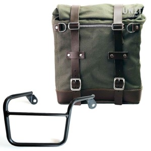 Portabolsas de aluminio con frontal de cuero regulable, enganche rápido y marco izquierdo