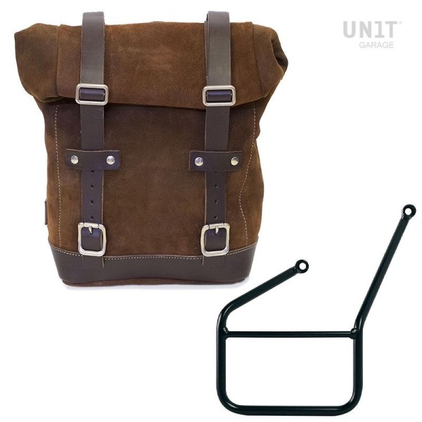 tratado con cera que lo hace resistente al agua. Con atención a los detalles más pequeños con acabados en cuero de 3 mm, simple y puro como los materiales con los que fue construido. Se conecta rápidamente a nuestro marco portabolsas con el sistema de liberación rápida aplicado a la parte posterior de la bolsa que está equipada con un candado para bloquear. Puede contener un portátil de 15" en su interior, está equipado con un gran bolsillo con cremallera para teléfono y documentos.