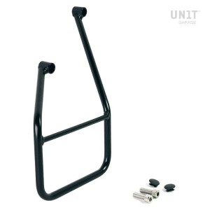 Marco izquierdo fabricado en acero tratado con acabado en polvo epoxi negro mate.
