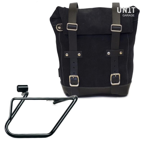 tratado con cera que lo hace resistente al agua. Con atención a los detalles más pequeños con acabados en cuero de 3 mm, simple y puro como los materiales con los que fue construido. Se conecta rápidamente a nuestro marco portabolsas con el sistema de liberación rápida aplicado a la parte posterior de la bolsa que está equipada con un candado para bloquear. Puede contener un portátil de 15" en su interior, está equipado con un gran bolsillo con cremallera para teléfono y documentos.