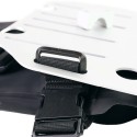 placa, que está provista de una cerradura para bloquear en el propio marco. La placa crea una superficie de montaje plana en el costado de la bicicleta, esto permitirá el transporte de bolsas sueltas u otros objetos, como sacos de dormir, chaquetas, etc. La solapa frontal, con atención a los detalles más pequeños, con acabados en Hypalon, se puede ajustar mediante los cursores suministrados y se puede quitar muy rápidamente de la placa.