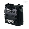 - Placa trasera en aleación de aluminio con recubrimiento de polvo integrada en la bolsa con sistema de enganche rápido en acero inoxidable y cerradura (2 llaves incluidas para cada bolsa)