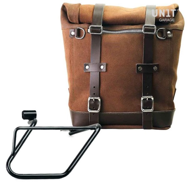 Bolsa lateral Scram extensible de 22 a 30 Litros hecha a mano en Italia en robusta piel serraje impermeable de primera calidad.