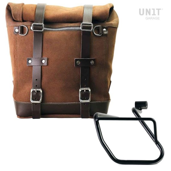 Bolsa lateral Scram extensible de 22 a 30 Litros hecha a mano en Italia en robusta piel serraje impermeable de primera calidad.