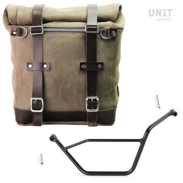 Bolsa lateral Scram extensible de 22 a 30 Litros hecha a mano en Italia en robusta piel serraje impermeable de primera calidad.