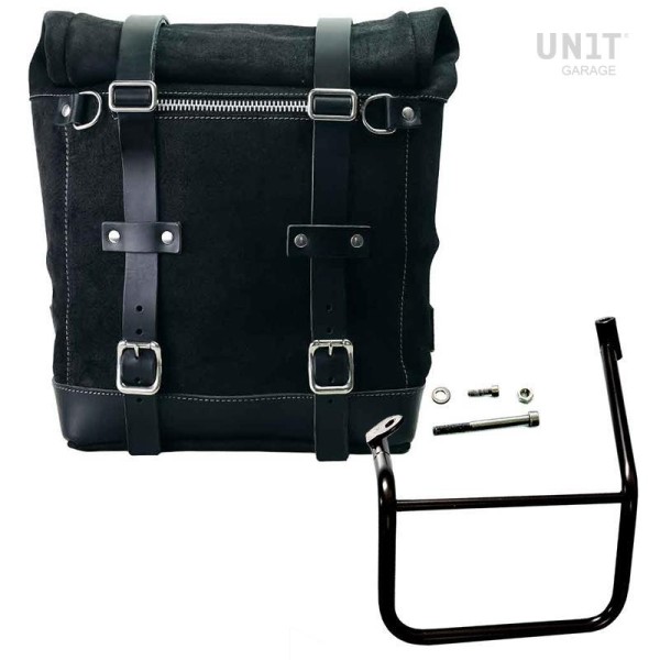 Bolsa lateral Scram extensible de 22 a 30 Litros hecha a mano en Italia en robusta piel serraje impermeable de primera calidad.