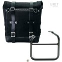 Hecho para modelos a partir de 2020 que tienen el doble escape derecho, o si ha eliminado el doble escape con salida Derecha e Izquierda e instaló un escape de repuesto con salida solo en el lado derecho. Diseñado sobre el cuadro Ducati Scrambler, se integra perfectamente con el resto de la moto. Listo para albergar nuestro sistema de enganche rápido, hermoso y minimalista incluso cuando la bolsa no está montada. Se puede utilizar cómodamente con el pasajero a bordo.