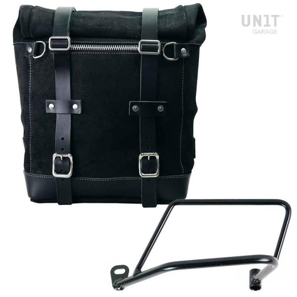 Deriva de nuestro clásico bolso U002, pero es mucho más espacioso y tiene en su interior un núcleo extraíble de material rígido que mantiene su forma incluso cuando el bolso está vacío. Atención al más mínimo detalle con acabados en piel de 3 mm, simple y pura como los materiales con los que fue construida. Se fija rápidamente a nuestro marco portabolsas con el sistema de liberación rápida ya incluido y montado en la parte posterior de la bolsa, que está equipado con un candado para bloquear en el propio marco. También puede albergar un casco jet en su interior y está equipado con un gran bolsillo frontal con cremallera accesible desde el exterior. Para abrirlo no es necesario quitar las hebillas delanteras sino simplemente moverlas hacia un lado, lo cual es muy rápido y práctico. Para proteger y organizar tu equipaje te recomendamos utilizar en su interior la bolsa ligera multiusos Khali de 18L.