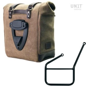 tratado con cera que lo hace resistente al agua. Con atención a los detalles más pequeños con acabados en cuero de 3 mm, simple y puro como los materiales con los que fue construido. Se conecta rápidamente a nuestro marco portabolsas con el sistema de liberación rápida aplicado a la parte posterior de la bolsa que está equipada con un candado para bloquear. Puede contener un portátil de 15" en su interior, está equipado con un gran bolsillo con cremallera para teléfono y documentos.