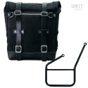 tratado con cera que lo hace resistente al agua. Con atención a los detalles más pequeños con acabados en cuero de 3 mm, simple y puro como los materiales con los que fue construido. Se conecta rápidamente a nuestro marco portabolsas con el sistema de liberación rápida aplicado a la parte posterior de la bolsa que está equipada con un candado para bloquear. Puede contener un portátil de 15" en su interior, está equipado con un gran bolsillo con cremallera para teléfono y documentos.