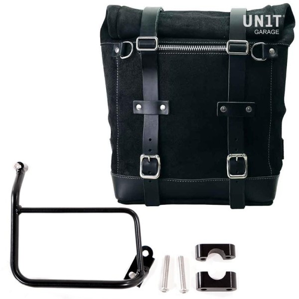Bolsa lateral Scram extensible de 22 a 30 Litros hecha a mano en Italia en robusta piel serraje impermeable de primera calidad.