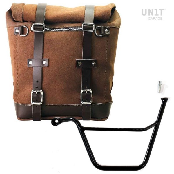 Bolsa lateral Scram extensible de 22 a 30 Litros hecha a mano en Italia en robusta piel serraje impermeable de primera calidad.