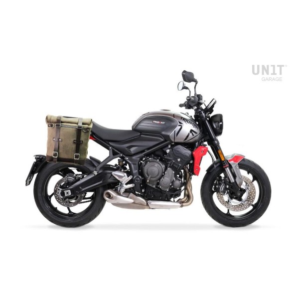 Diseñado sobre el cuadro Triumph, se integra perfectamente con el resto de la moto. Listo para albergar nuestro sistema de fijación rápido, hermoso y mínimo, incluso cuando la bolsa no está montada.