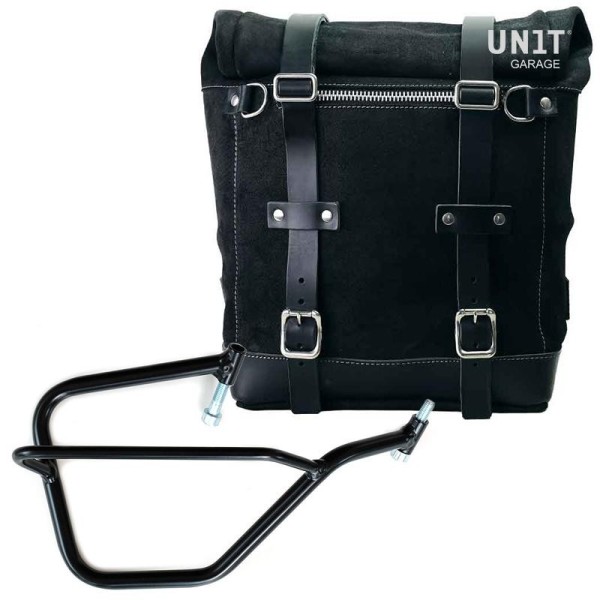 Se deriva de nuestra clásica bolsa U002, pero es mucho más espaciosa y tiene un núcleo extraíble en material rígido en el interior que mantiene su forma incluso cuando la bolsa está vacía. Con atención a los detalles más pequeños con acabados en cuero de 3 mm, simple y puro como los materiales con los que fue construido. Se conecta rápidamente a nuestro marco portabolsas con el sistema de liberación rápida ya incluido y montado en la parte posterior de la bolsa, que está equipada con un candado para bloquear en el propio marco. También puede albergar un casco jet en su interior, y está equipado con un gran bolsillo frontal con cremallera accesible desde el exterior. Para abrirlo no es necesario quitar las hebillas delanteras sino simplemente desplazarlas hacia un lado, de una forma muy rápida y práctica. Para proteger y organizar tu equipaje, te recomendamos utilizar la bolsa multiusos Khali light de 18L en el interior