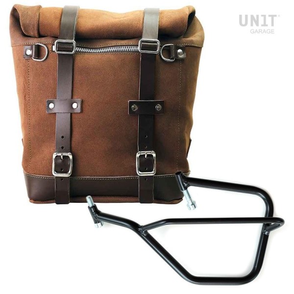 Bolsa lateral Scram extensible de 22 a 30 Litros hecha a mano en Italia en robusta piel serraje impermeable de primera calidad.