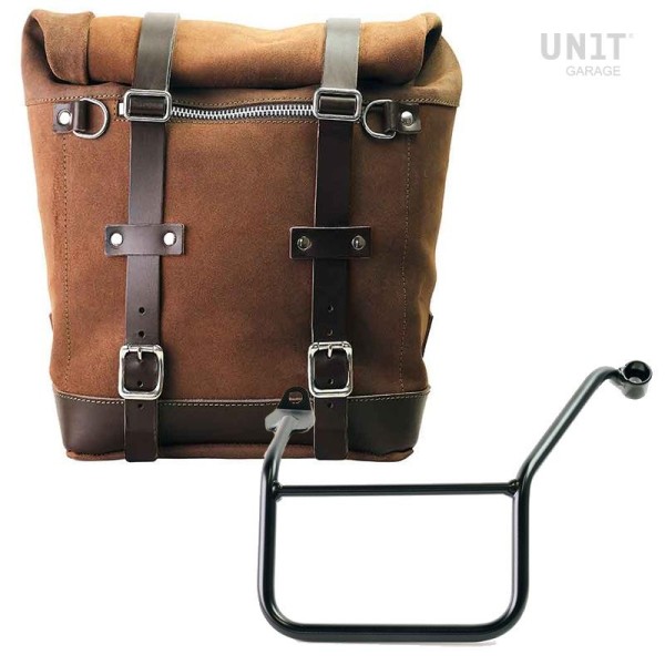 Se deriva de nuestra clásica bolsa U002, pero es mucho más espaciosa y tiene un núcleo extraíble en material rígido en el interior que mantiene su forma incluso cuando la bolsa está vacía. Con atención a los detalles más pequeños con acabados en cuero de 3 mm, simple y puro como los materiales con los que fue construido. Se conecta rápidamente a nuestro marco portabolsas con el sistema de liberación rápida ya incluido y montado en la parte posterior de la bolsa, que está equipada con un candado para bloquear en el propio marco. También puede albergar un casco jet en su interior, y está equipado con un gran bolsillo frontal con cremallera accesible desde el exterior. Para abrirlo no es necesario quitar las hebillas delanteras sino simplemente desplazarlas hacia un lado, de una forma muy rápida y práctica. Para proteger y organizar tu equipaje, te recomendamos utilizar la bolsa multiusos Khali light de 18L en el interior